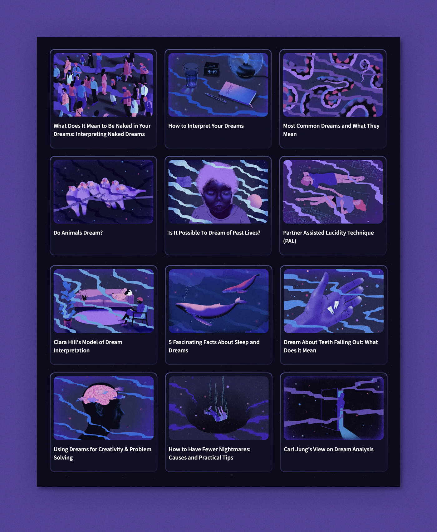 Illustrations drawn for a blog about lucid dreaming, run by the creators of the